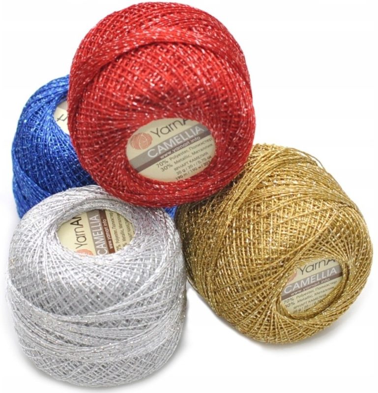 This is a mercerized cotton yarn blended with lurex for shine. Composed of 96% cotton and 4% metallic polyester, it’s excellent for fine crochet projects like snowflakes, lace coasters, and heirloom-style Christmas décor. It holds its shape well and gives a polished, clean finish with just enough sparkle.