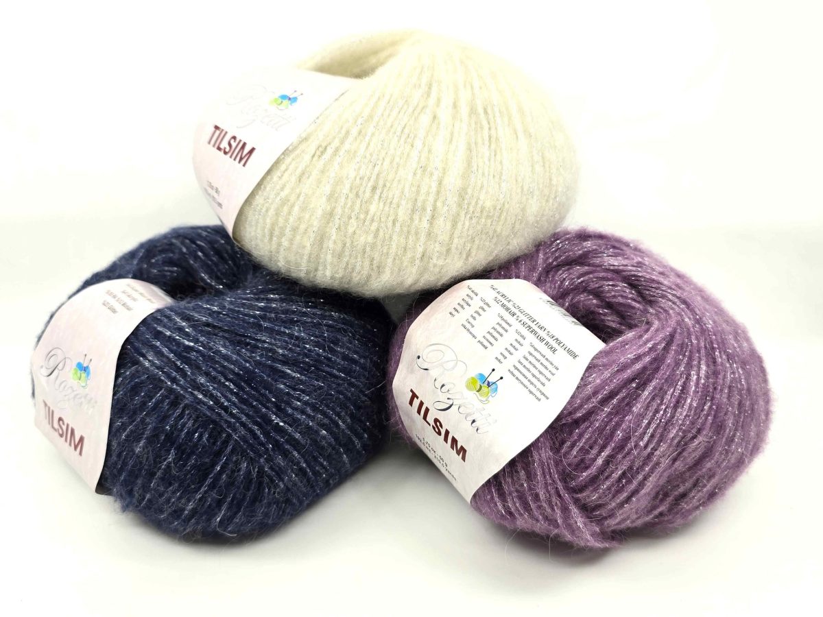 Lightweight and airy, Tılsım creates fabrics with a beautiful mohair halo effect, while the metallic strand brings just the right amount of glamour. Its generous 192 m per 50 g ball makes it excellent for layering pieces like shawls and cardigans, as well as stylish accessories such as scarves, hats, and festive garments.